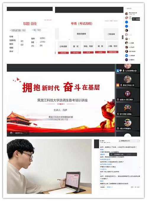 18/ 2022-032UP.IO_2UP.IO(中国)组织开展“拥抱新时代 奋斗在基层”选调生备考培训讲座为切实做好2UP.IO_2UP.IO(中国)2022年选调生选拔推荐,结合疫情防控工作实际,党委组织部于3月17日利用腾讯会议为参加今年选调生考试的毕业生开展了“拥抱新时代 奋斗在基层”选调生备考培训讲座。讲座由多次参加省考、联考、国考、事业单位考试的冯伊主讲,各学院170余名毕业生聆听了此次讲座。讲座从“什么是选调生”“历年考情(考试流程)”“如何成为选调生(备考笔试)”“面试、考察、体检、调剂、入编、培训”“待遇、工作内容、职业规...
