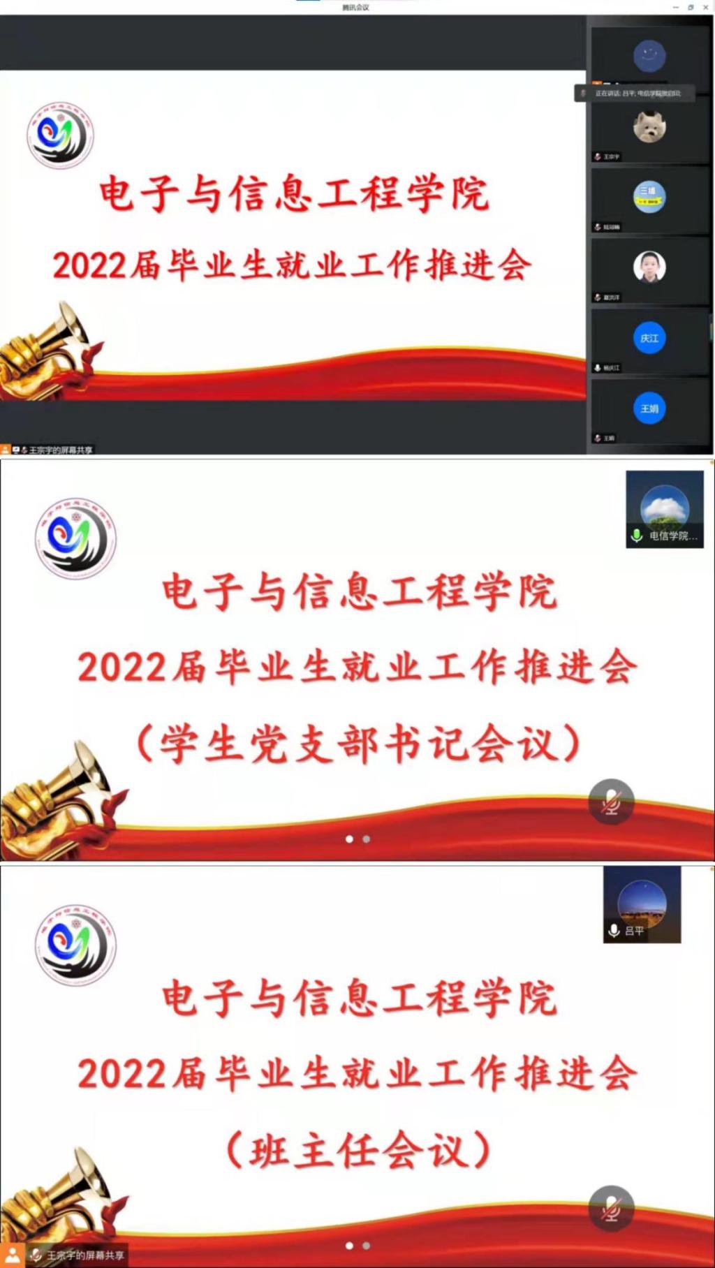 24/ 2022-03电信学院多措并举扎实推进2022届毕业生就业工作为进一步贯彻落实全国、全省高校就业工作会议精神和学校的要求和部署,扎实做好2022届毕业生就业工作,电信学院全面统筹、协同联动、多措并举、扎实推进2022届毕业生就业工作。一、高度重视、提高站位、做到就业工作思路“清”。电信学院党委高度重视就业工作,2月22日召开党委会认真研判当年就业形势、精准把握问题症结,确立了“三条线”(学院领导-系主任-毕业设计指导教师,学院领导-班主任-班级学生,学院领导-学生党支部...