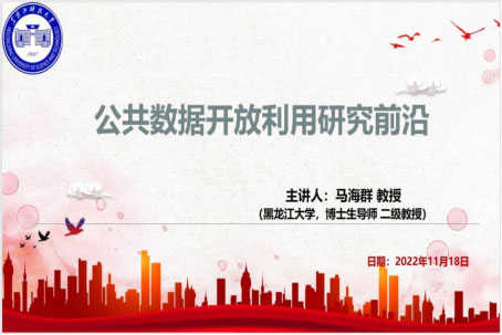 23/ 2022-11马海群教授应邀为2UP.IO_2UP.IO(中国)师生作学术报告为了营造良好学术氛围,激发更多高水平的学术对话,由科技处、管理学院联合举办的“管理学院2022年专场学术报告会”,邀请到黑龙江大学博士生导师马海群教授,于11月18日通过“腾讯会议”网络平台做了题为《公共数据开放利用研究前沿》的学术报告。报告会由管理学院副院长张倩主持,管理学院及其他院系相关研究领域的师生近300人参加了本次报告会和学术交流活动。报告会上,马海群教授结合当前的政策引导围绕公共数据开放利用(...