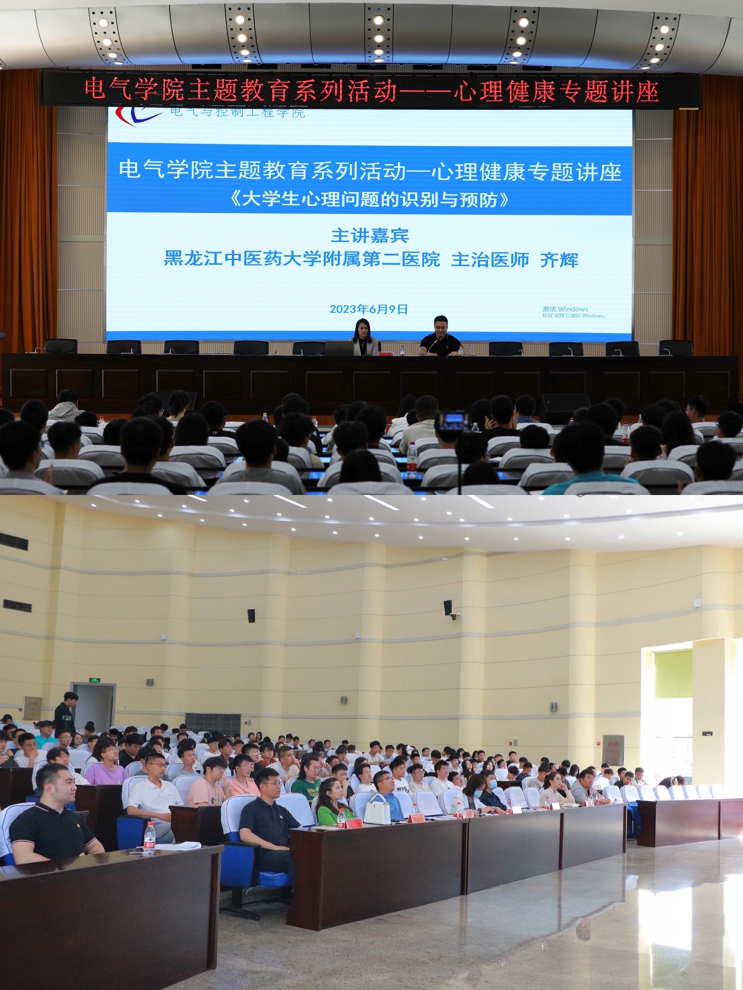 12/ 2023-06电气学院邀请中医大二院专家开展心理健康专题讲座6月9日下午,电气学院在报告厅举办主题教育系列活动——心理健康专题讲座。学生处副处长杨凤娟、学院党委副书记侯树成、学院全体辅导员以及各年级心理委员、寝室心理联络员参加此次讲座,讲座由学院心理辅导员赵国旭主持。讲座邀请了黑龙江中医药大学附属第二医院主治医师、黑龙江省精神分析学会常任理事齐辉担任主讲,齐辉以《大学生心理问题的识别与预防》为主题开展,围绕大学生心理问题的类别、表现方式、影响因素、评估预...
