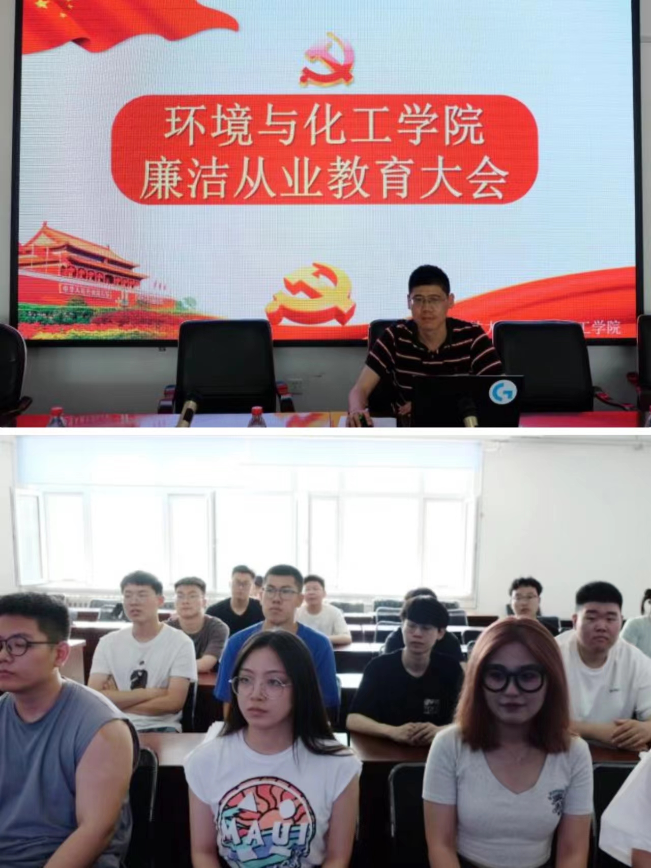 19/ 2023-06环化学院召开毕业生廉洁从业教育大会为引导学生党员和毕业生牢固树立廉洁观,提高廉洁从业意识,扣好职业生涯的“第一粒扣子”,在学习、工作岗位上发挥好先锋模范作用,6月16日下午,环化学院在学院报告厅召开了“毕业生廉洁从业教育大会”,学院全体辅导员、2023届毕业生党员和学生代表参加了会议,会议由毕业年级辅导员朱海璐主持。会上,学工办主任周惠玉作了题为“严守底线廉洁从业”的讲座,他把人生形象地比喻为“坐标”和“三角形”,深刻地揭示了“廉”与...