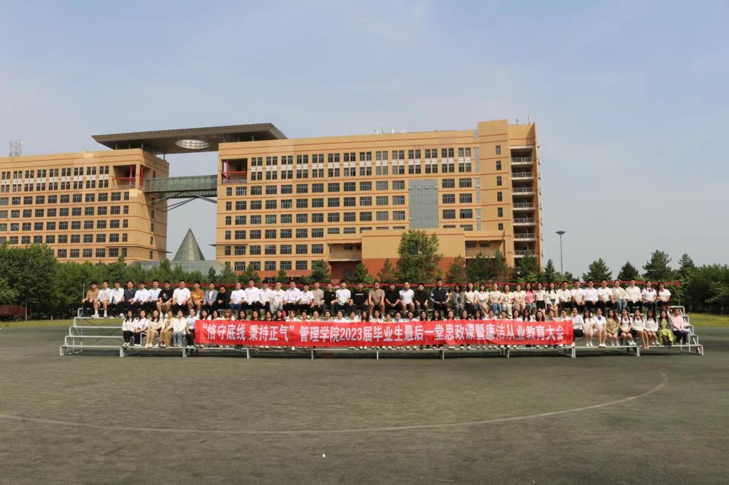 20/ 2023-06管理学院召开“恪守底线 秉持正气”2023届毕业生最后一堂思政课暨廉洁从业教育大会为深入学习贯彻习近平新时代中国特色社会主义思想,推进毕业生理想信念教育、爱国主义教育,强化毕业生廉洁意识、规则意识、纪律意识、诚信意识,管理学院于6月19日上午召开“恪守底线、秉持正气”管理学院2023届毕业生最后一堂思政课暨廉洁从业教育大会,学院党政领导、各教研室教师代表、学工办全体辅导员以及2023届毕业生参加活动。活动由学院党委副书记徐海英主持。党委副书记徐海英为全体毕业生阐述了廉洁自律的重要性和必...
