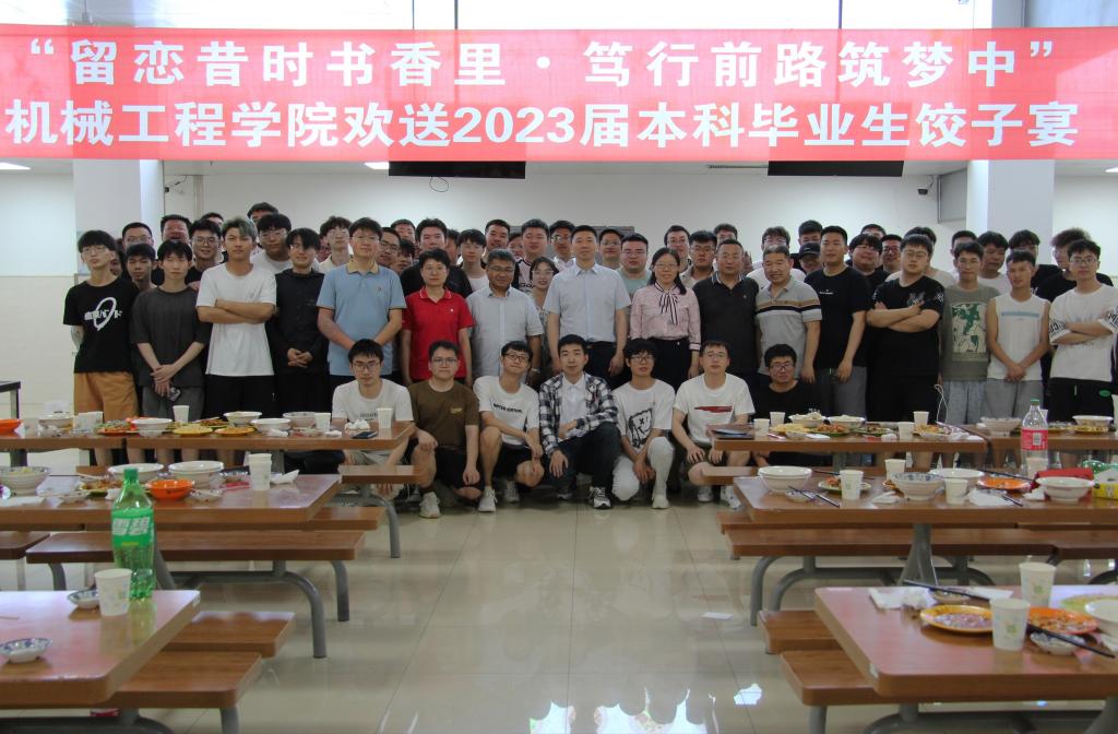 20/ 2023-06机械工程学院举办欢送2023届毕业生饺子宴一盘饺子,一份温暖,一片真情!6月19日上午,机械工程学院在学校沁香园二楼举办了“留恋昔时书香里•笃行前路筑梦中”——欢送2023届毕业生饺子宴。学院党委书记吕刚,副院长唐庆菊,副院长齐立涛,副处级辅导员毕强,辅导员,毕业班班主任和各班级毕业生代表参加了本次活动。吕刚作了致辞。一是祝贺。祝贺顺利毕业,尤其是克服疫情期间的种种不便和困难,圆满完成了学业;祝贺收获良多,大家不仅仅收获了一纸毕业证书,更收获...