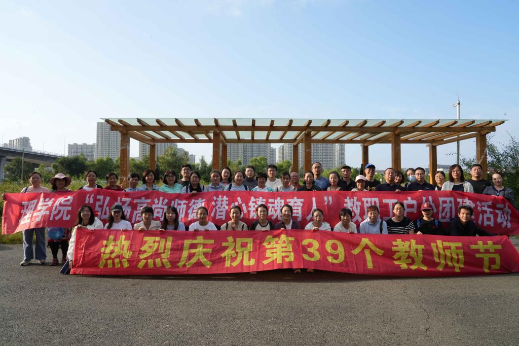 11/ 2023-09理学院开展“弘扬高尚师德,潜心铸魂育人”教职工团建活动春播桃李三千圃,秋来硕果满神州。在第39个教师节来临之际,学院于9月6日下午在阿勒锦岛开展了以“弘扬高尚师德 潜心铸魂育人”为主题的教职工团建活动。学院班子成员及全体教职工参与了活动。伴随着主持人的发令枪响,本次团建开始了第一项活动——环阿勒锦岛徒步。徒步过程中,教职工们你追我赶,争相向终点进发,展现了教职工们奋勇向前,力争上游的精神。同时,徒步过程中教职工们围绕生活、工作和学习进行了深入交流,欢声...