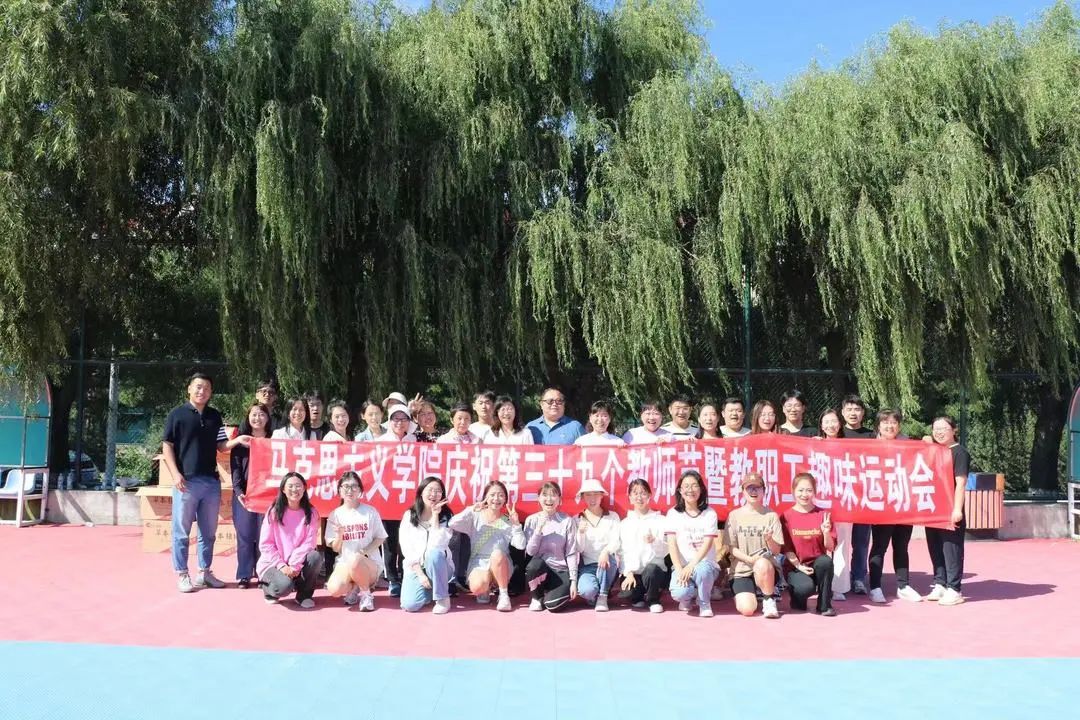11/ 2023-09马克思主义学院举办庆祝第39个教师节暨教师趣味运动会在第39个教师节到来之际,为了活跃教职工的业余文化生活,增强教职工身体素质,进一步提升教师的获得感、荣誉感和幸福感,激励广大教师崇德修身、潜心教书育人,弘扬尊师重教社会风尚,9月8日,马克思主义学院工会以“躬耕教坛,强国有我”为主题,在篮球场举办教师趣味运动会。活动现场欢声笑语,教师们欢聚在一起,用别样的趣味运动迎接属于我们的节日。个人项目中,大家全力投入,现场气氛轻松喜悦。在团体赛项目中,教师们...