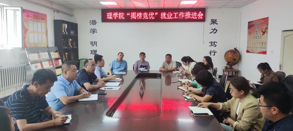14/ 2023-09理学院召开“揭榜竞优”就业工作推进会为了进一步推进2024届毕业生就业工作,明确职责,细化分工,学院于9月13日召开了“揭榜竞优”就业工作推进会。院班子成员、全体“揭榜”教师参加了会议。会上,院长张向华结合《理学院“揭榜竞优”就业工作办法》,面向与会教师布置了“揭榜竞优”的具体工作,要求参与就业工作的教师做好学生的思想动员。院党委书记贺龙军进一步阐释了“揭榜竞优”工作办法,通报了目前学校的整体就业率及学院各专业的就业率。针对当前的2024届...
