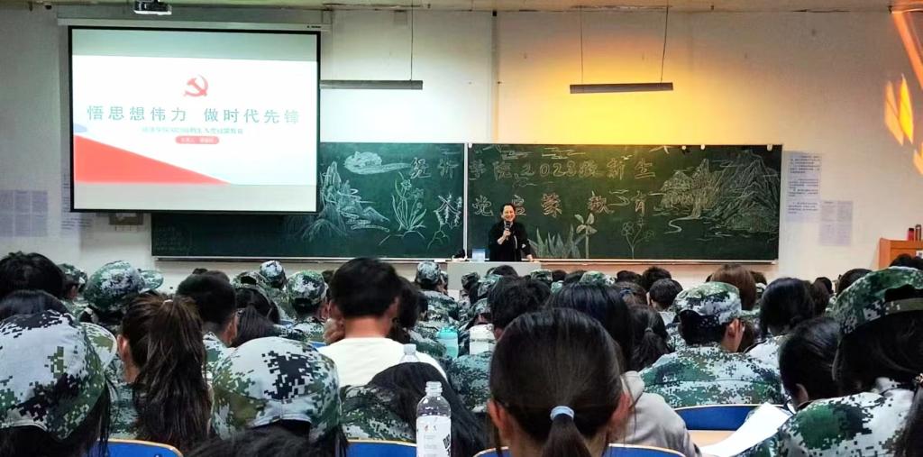 14/ 2023-09经济学院开讲新生入党启蒙第一课为深入贯彻学习习近平新时代中国特色社会主义思想主题教育,加强学院2023级新生思想引领,引导新生积极向党组织靠拢,自觉争做中国特色社会主义的坚定信仰者和忠实践行者,9月12日晚经济学院党委书记雷金屹以“悟思想伟力 做时代先锋”为题,为全体2023级新生讲授了入党启蒙教育第一课。课上,雷金屹首先从认识马克思主义政党——中国共产党讲起,深入浅出地解读了党的发展历程、指导思想和党的基本理论,引导新生们充分汲取前...