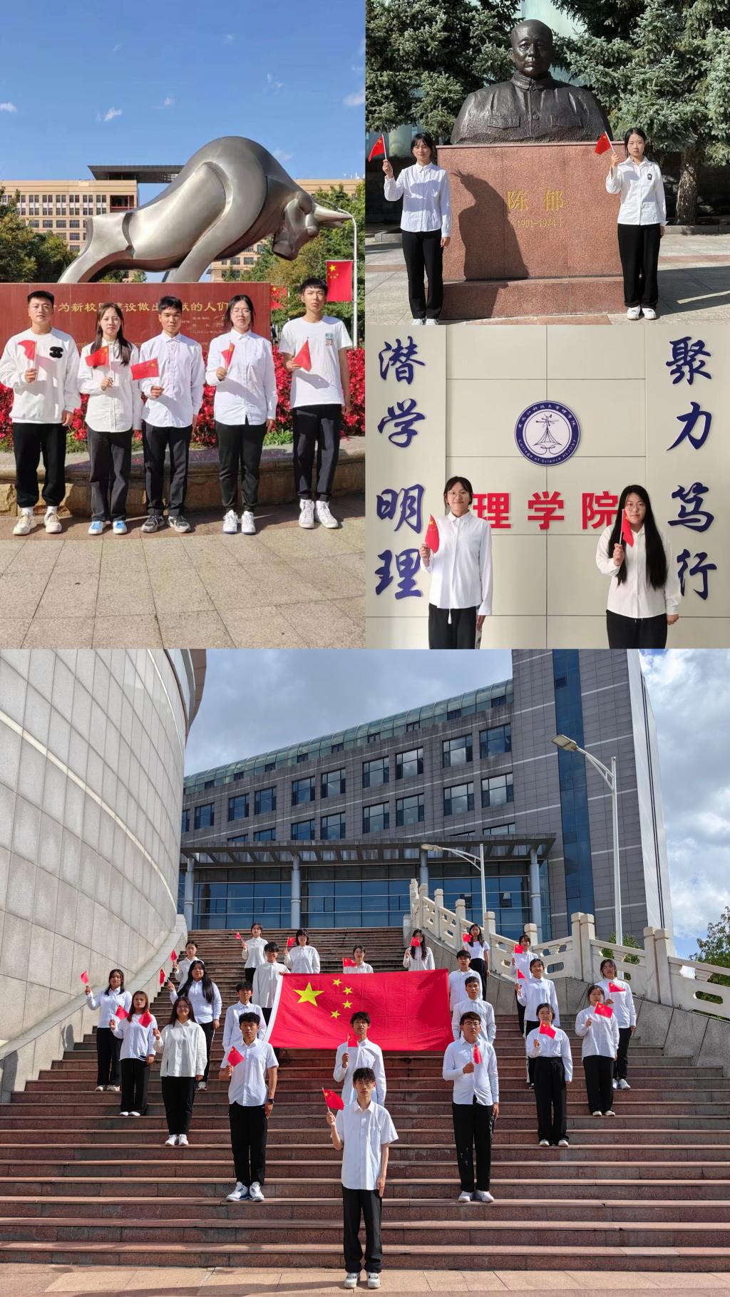 28/ 2023-09理学院学生党支部开展“迎国庆、心向党”主题党日系列活动为庆祝新中国成立74周年,进一步弘扬爱国情怀,丰富学院“一体两翼三学四悟五践行”学生党员教育机制。在国庆节前夕,理学院学生党支部精心组织开展了“迎国庆、心向党”主题党日系列活动,为祖国母亲献上最真挚的生日祝福。“告白祖国”——庆岁月芳华学生第一党支部开展“与国旗合影,向祖国告白”活动,学生党员、团员积极参与,在校内各个角落定格与国旗的最美合影,将爱国主义“内化于心,外化于行”。学生们纷纷表示:与...