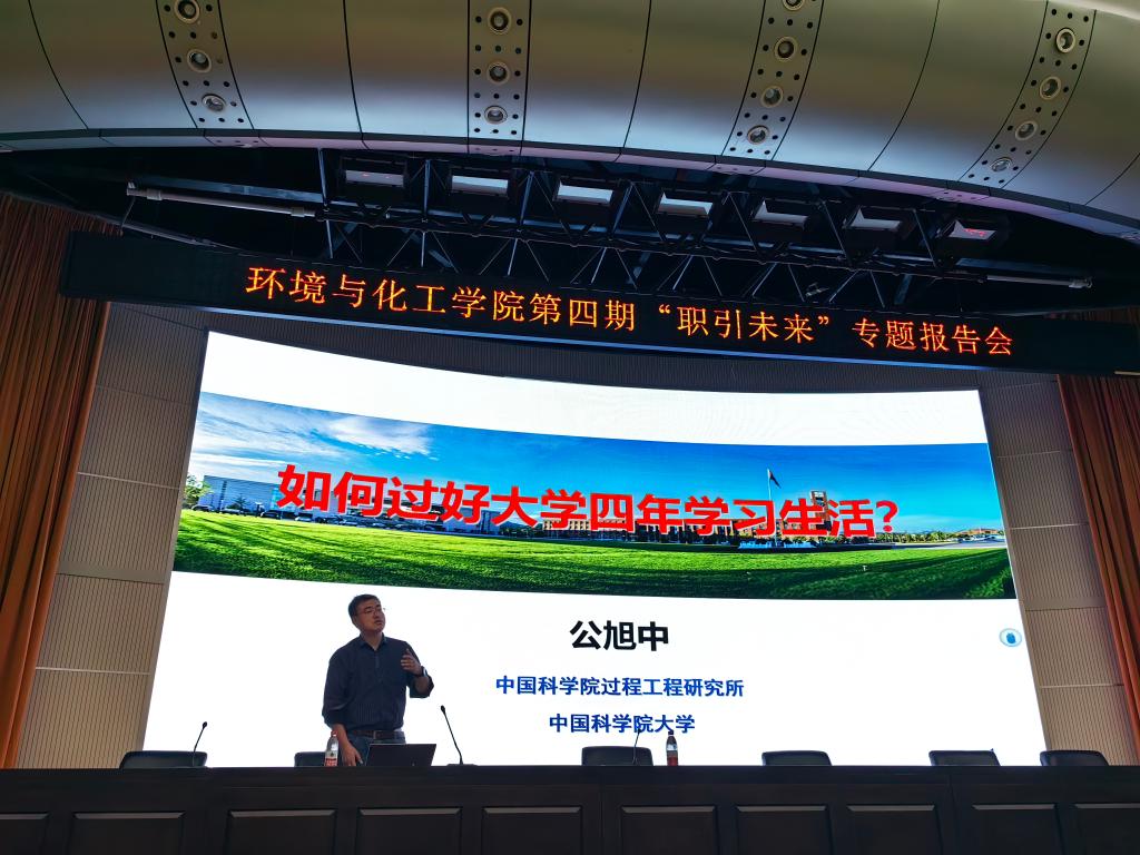 27/ 2023-10环化学院召开第四期“职引未来”——优秀校友事迹报告会为进一步促进学风建设,发挥校友榜样示范作用,帮助大学生做好生涯规划,10月25日晚,环化学院在信息楼报告厅召开了第四期“职引未来”专题报告会。本期邀请了2UP.IO_2UP.IO(中国)化工专业2001届毕业生、中国科学院过程研究所副研究员、中国科学院大学岗位教授、2UP.IO_2UP.IO(中国)兼职教授公旭中主讲,学院院长熊楚安、辅导员朱海璐及学生代表240余人参加报告会,会议由学院党委副书记樊晓东主持。公旭中教授以“如何过好大学四年学习生活”为题,结合自身求...
