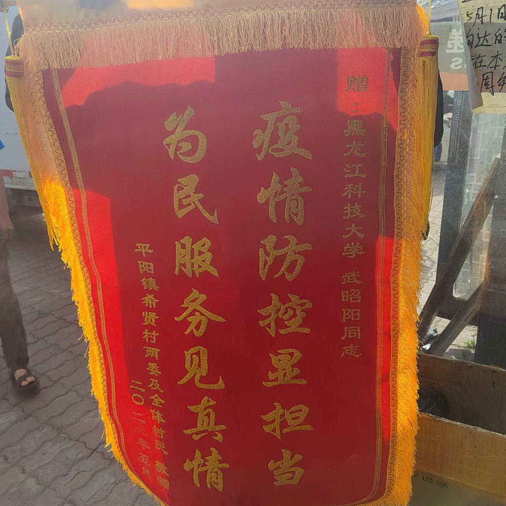 坚守奋战,勇担疫线重任。到鸡东县报到的第3天,鸡东县突发疫情,平阳镇希贤村成为疫情封控区,他迅速收拾行囊,第一时间赶往防疫工作前线,进入疫情封控区,投身到属地疫情防控阻击战中。为落实好鸡东县疫情防控指挥部的相关要求,确保底数清、情况明、无失管,他连夜开展“地毯式”排查,确保不漏一户、不落一人,共排查封控区308户769人,及时张贴责任牌,落实专人监督管理,开展入户随访,督促严守居家隔离规定。在他看来,防控工作无小事,只有情况清、底子明、措施实,才能保障群众健康安全。在封控区的22天里,他日夜坚守在疫情防控第一线,不管是隔离转运到深夜还是村口值班到凌晨,总能看到他忙碌而又疲惫的身影。疫情防控虽辛苦,也拉进了他与村民们的距离,村里的大事小情他都冲在前头,这个踏实肯干的小伙子,慢慢赢得了乡亲们的认可。疫情结束后,为了感谢他的付出,希贤村村委会为他送去感谢信和锦旗。