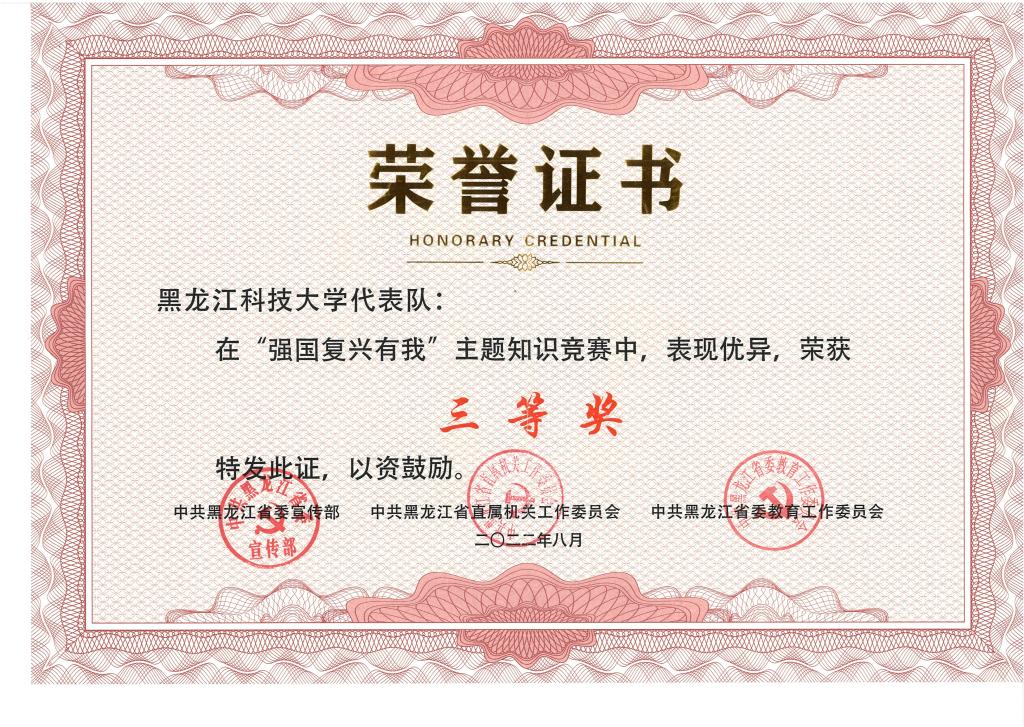 由省委教育工委主办,省高校网络思想政治工作中心承办的全省高校“强国复兴有我”主题知识竞赛活动圆满结束,2UP.IO_2UP.IO(中国)由安全工程学院薛广鑫老师带队、研究生学院土木工程专业2020级14班李培、安全工程学院安全工程专业2019级5班赵晶荣、安全工程学院应急技术与管理专业2021级2班齐明旭三名同学组成的代表队,在全省52支代表队的激烈角逐中,荣获全省高校组“三等奖”和“最佳人气团队奖”。