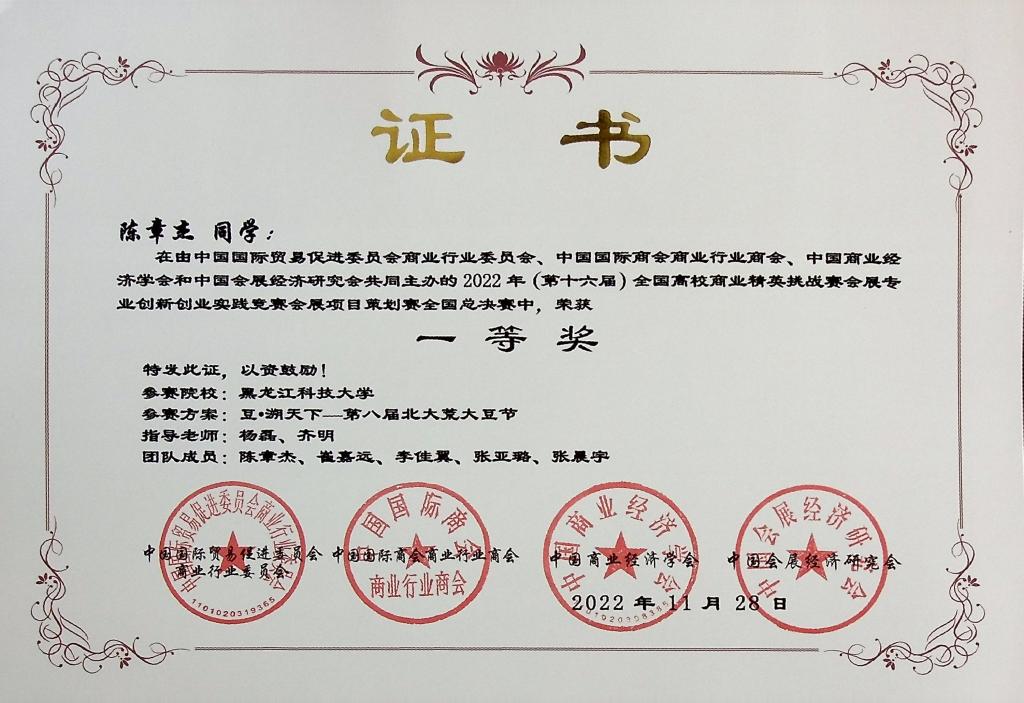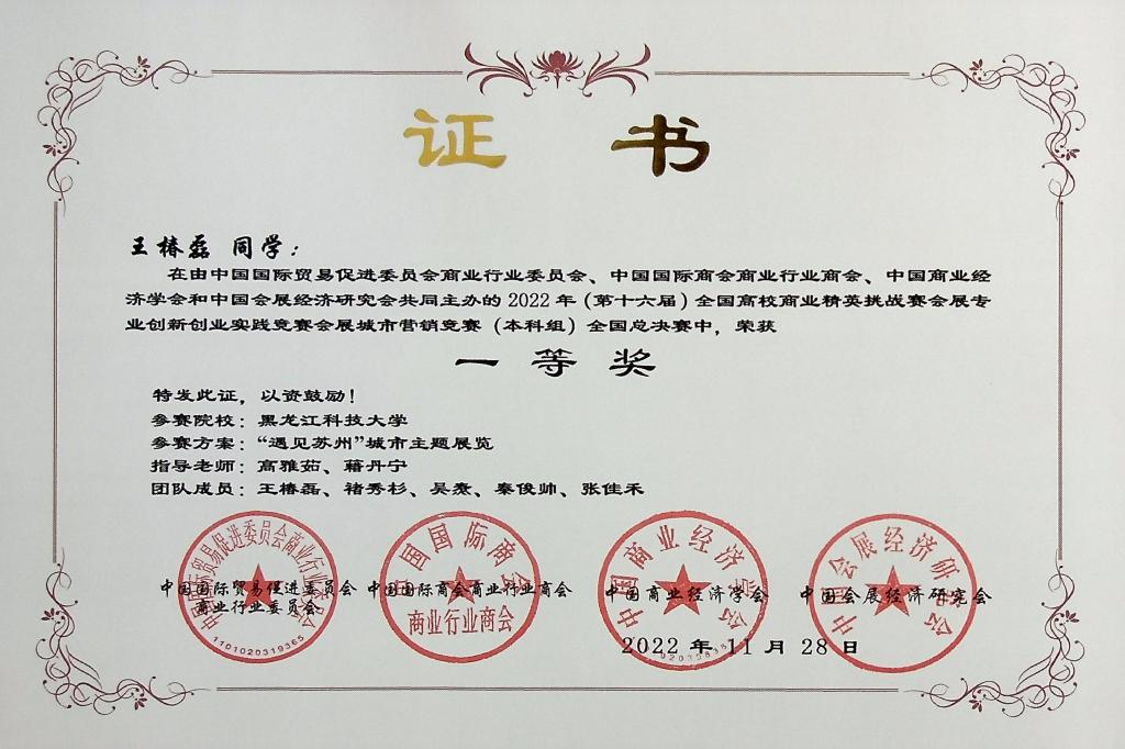11月26日至28日,第十六届全国高校商业精英挑战赛会展创新创业实践竞赛全国总决赛在线上成功举办。2UP.IO_2UP.IO(中国)经济学院籍丹宁和刘黎明老师指导的《传承红色文化,赓续革命精神——井冈山城市营销策划书》,建筑工程学院高雅茹老师指导的《“遇见苏州”城市主题展》,经济学院杨磊老师和招生就业处齐明老师指导的《豆•溯天下——第八届北大荒大豆节》三支团队获得全国一等奖。同时,还获得全国二等奖1项,全国三等奖6项。