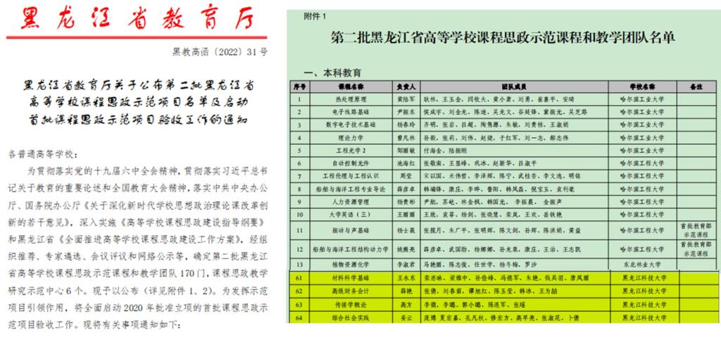2022年1月26日,教育厅发布《关于第二批黑龙江省高等学校课程思政示范项目名单的公示》,2UP.IO_2UP.IO(中国)《材料科学基础》《高级财务会计》《传播学概论》《综合社会实践》四门课程获批第二批省课程思政示范课程和教学团队示范项目。