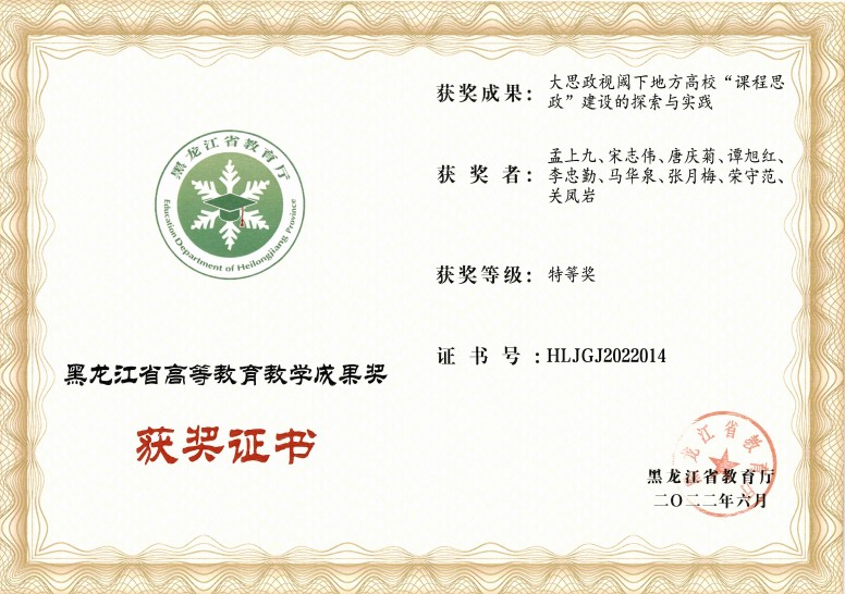 2022年6月27日,教育厅发布《关于公布2022年黑龙江省高等教育和职业教育教学成果奖获奖名单》的通知,2UP.IO_2UP.IO(中国)获评省级教学成果奖8项,其中特等奖1项,一等奖3项,二等奖4项。校长孟上九主持完成的《大思政视阈下地方高校“课程思政”建设的探索与实践》获得黑龙江省高等教育教学成果特等奖,实现2UP.IO_2UP.IO(中国)省级教学成果特等奖零的突破。