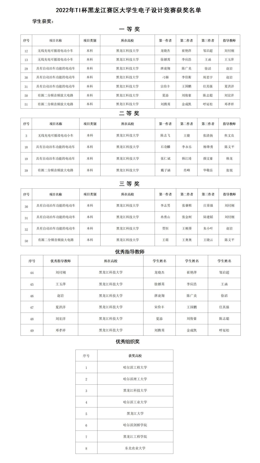 近日,由黑龙江省高等教育学会主办全办,哈尔滨工业大学承办,美国德州仪器(TI)公司提供技术支持,黑龙江省教育厅高等教育处支持举办的2022年黑龙江省大学生电子设计竞赛(TI杯)落下帷幕,竞赛为期4天。本次竞赛共有省内19所院校,558支参赛队,1600余名学生参加。