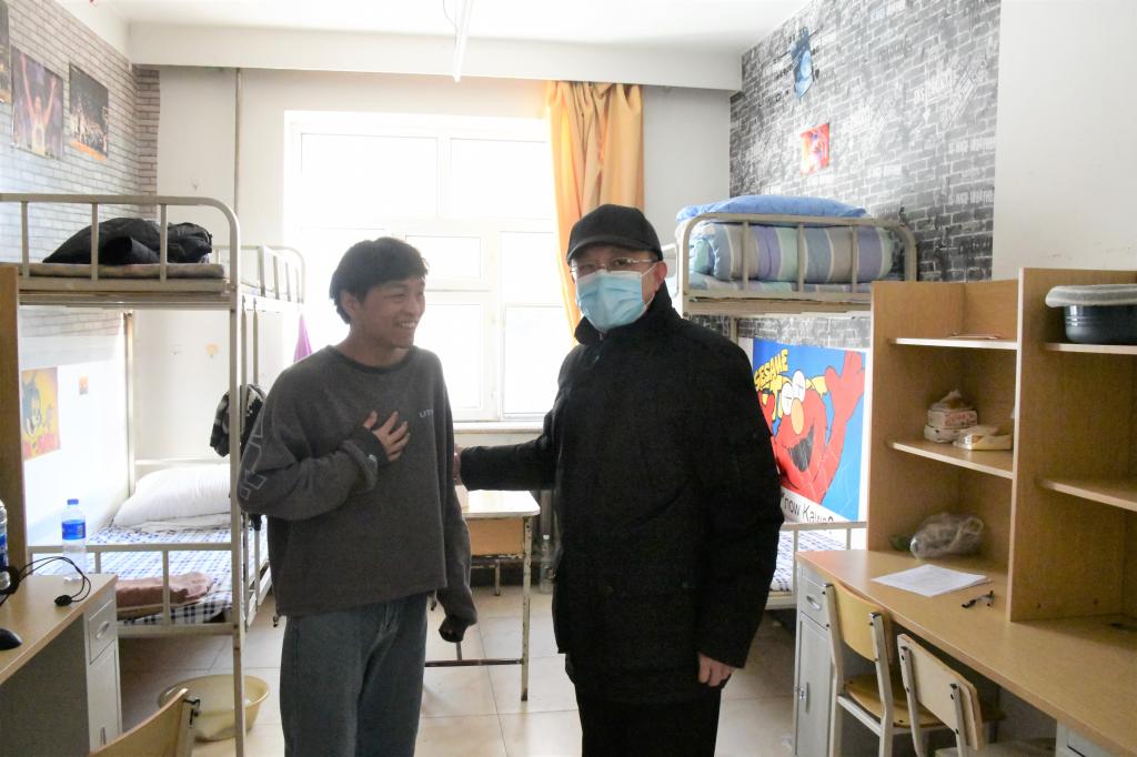 周宏力、孟上九一行首先来到第一学生公寓和学生食堂,与已返校的学生志愿者进行亲切交流,详细了解健康、学习、生活等情况,深入检查了学生公寓及食堂的基础设施、防疫设备、通风条件、食品和饮用水安全、物资供应及储备等情况,强调要强化饮食安全管理,严格执行食品安全制度,加大对原材料采购、加工制售、清洗消毒等管控力度,确保饮食安全;要在做好学生返校接待、防护教育、健康监测等工作的同时,切实做好学生公寓水电暖、生活必需品等服务保障,持续为学生创造舒适的学习生活环境。