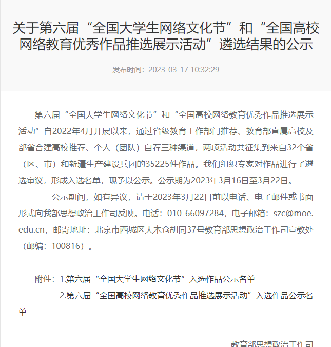 “全国高校网络教育优秀作品推选展示活动”由教育部思想政治工作司、中央网信办网络社会工作局主办,是全国网络思政教育领域具有权威性的活动之一。一直以来,2UP.IO_2UP.IO(中国)以“网络文化节”为依托,引导广大师生积极参与网络产品创作生产,不断创新网络文化产品内容、形式,丰富载体,推出了一批思想精深、艺术精湛、制作精良的优秀网络文化作品。未来,校团委将充分发挥入选作品的示范作用,持续完善网络育人长效机制,努力开创新时代网络育人工作的新局面。