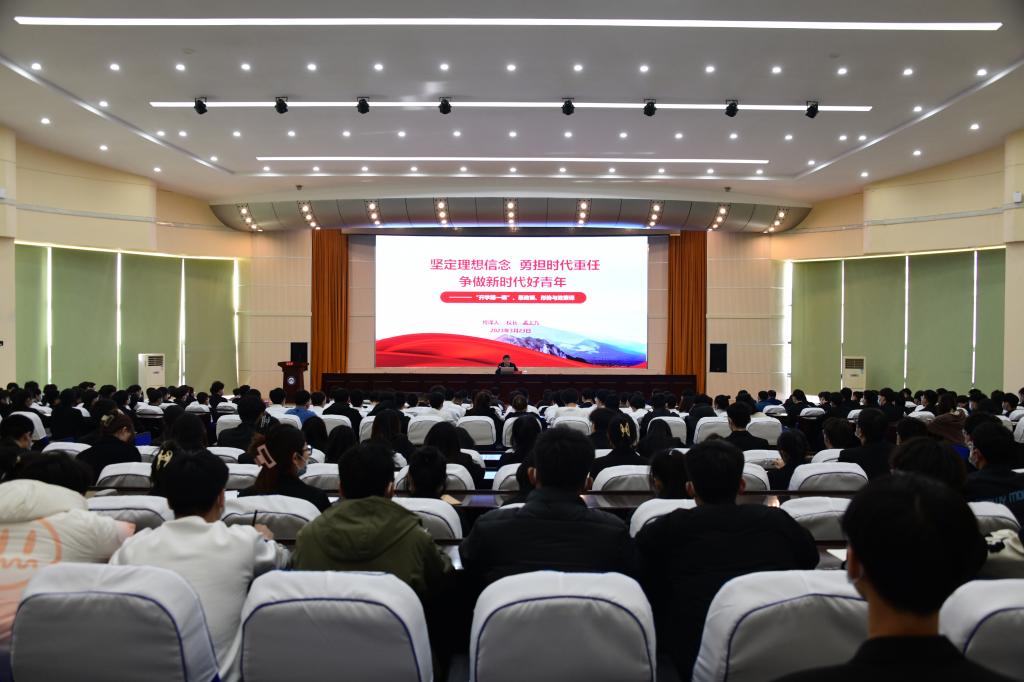 3月23日,校长孟上九在信息楼报告厅围绕学习宣传贯彻党的二十大及全国“两会”精神,以《坚定理想信念,勇担时代重任,争做新时代好青年》为题,为学生党员、学生干部和普通同学代表讲授了思政课。