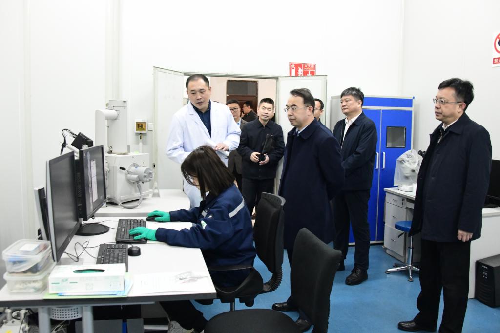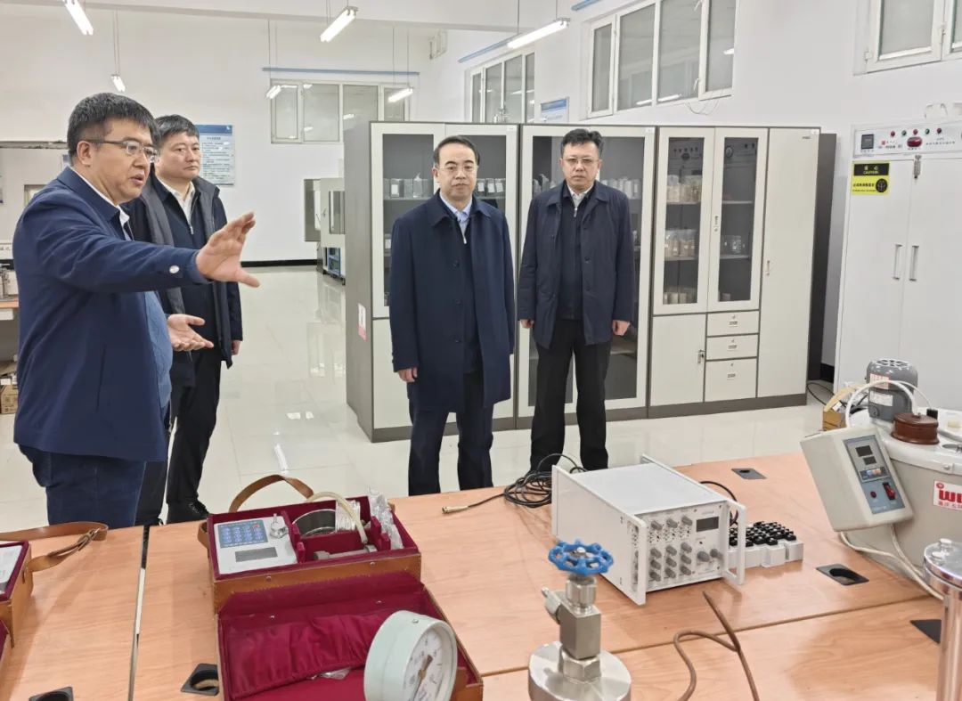 陈延良一行走访了学校重点实验室,仔细询问了技术落地和产业化应用前景,并与学校负责同志座谈交流,详细了解人才培养、师资建设、学科建设、科技创新和合作办学等情况。他指出,学校要依托省“双一流”建设,深度服务现代产业体系,将学科建设融入区域经济发展,高水平建设环大学大院大所创新创业生态圈,在矿产资源开发利用、智能矿山建设以及资源枯竭型城市转型发展等方向进一步深耕与创新,与相关企业协同创新,促进高校科技优势转化为经济优势。