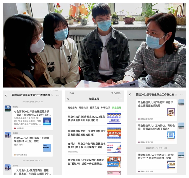就业育人是就业过程中的育人,面对严峻复杂的就业形势,部分学生由于缺乏面对面的指导或秉持不科学的择业认知,出现“有业难就”“有业缓就”“有业不就”等消极问题,针对此类问题,在学院何景洋书记的指导下,我们进行了三次全面摸排,通过数据分析整理后,与就业辅导员一起分层次、分步骤地对接学生,2022年的毕业季正值疫情防控期,我带领其他毕业班辅导员入住在学校,腾讯会议、微信平台成了我们的工作主阵地。