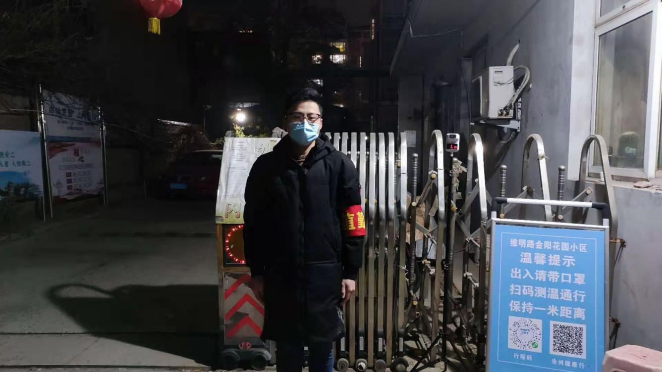 他是安全工程学院安全20-4班班长刘英泽,是一名入党积极分子,家住河北省沧州市新华区金阳花园。他作为志愿者的主要工作内容就是在小区门口为出入行人测量体温,进行登记,开关小区门,守好小区的第一道门。他说:“志愿服务是奉献社会,服务他人的一种方式,也是传递爱心,播种礼貌的过程。在帮助他人的同时自己也会收获一份快乐。事情虽小,但却能很好的锻炼自己,做好每一件小事,才能着手干更大的事,从细微之处方能知晓一个人的认真程度。