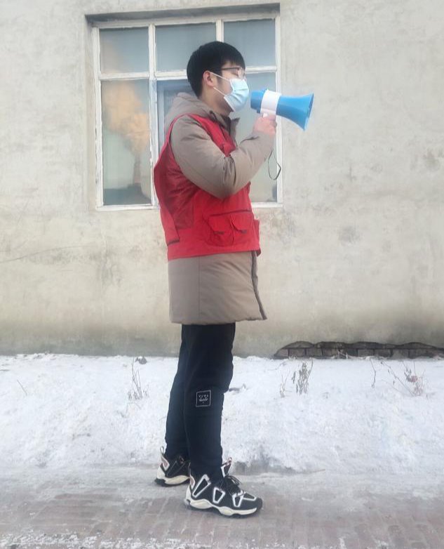 他是安全工程学院安全19-2班杨金博,在学院团委担任组织部部长一职,是一名入党积极分子,家住绥化市海伦市。今年寒假,杨金博积极响应号召加入了家乡疫情防控志愿者队伍,他说:“在平时的工作中,也遇到过居民的不理解、不配合,甚至是恶语相向,会对居民的不配合感到委屈、心酸,但更多的是居民们的积极配合和感谢。所有的工作人员和志愿者们都没有过一声抱怨,大家互相鼓励,共同分担,让每个人对这场疫情防控战役都充满了信心。