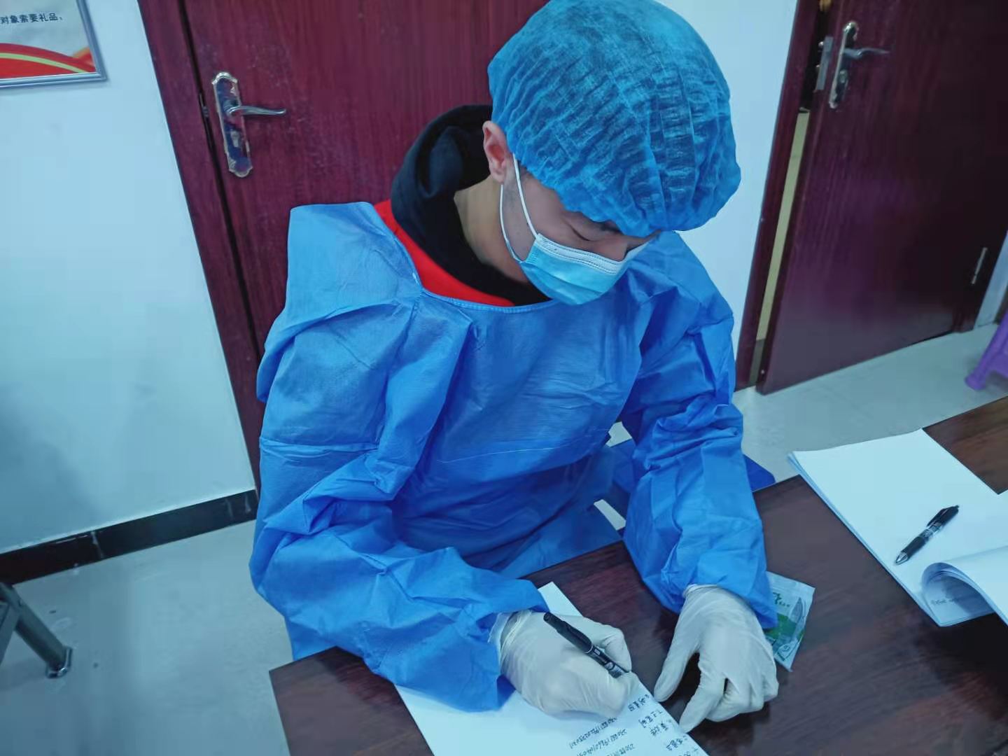 他是安全工程学院安全18-3班班长王领,是一名中共预备党员,家住嫩江市。当前,疫情正处于复杂时期,疫情防控更是一个重要阶段,王领积极响应嫩江团委号召,加入到嫩江防疫工作中。他说:“我深知自己身处直面潜在病患的前端,面对的压力不小。我的工作主要是协助填写登记表以及根据实际情况把从外地返回嫩江的人员交接给下一步工作的志愿者。任务虽然不重,但肩上的责任却很重。”