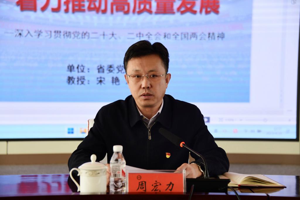 本次讲座邀请省委党校党史党建教研部宋艳玲教授以《加快构建新发展格局 着力推动高质量发展》为题作专题辅导报告。宋艳玲教授在讲座中系统阐释了构建新发展格局,推动高质量发展是实现中国式现代化的根本抉择,指出了构建新发展格局,推动高质量发展需统筹的几个重大关系以及实现的主要路径。宋教授的报告脉络清晰,内容丰富、生动详实,既有政策理论的高度,又紧密联系实际,对学校开展主题教育具有很强的指导、引领和助推作用。