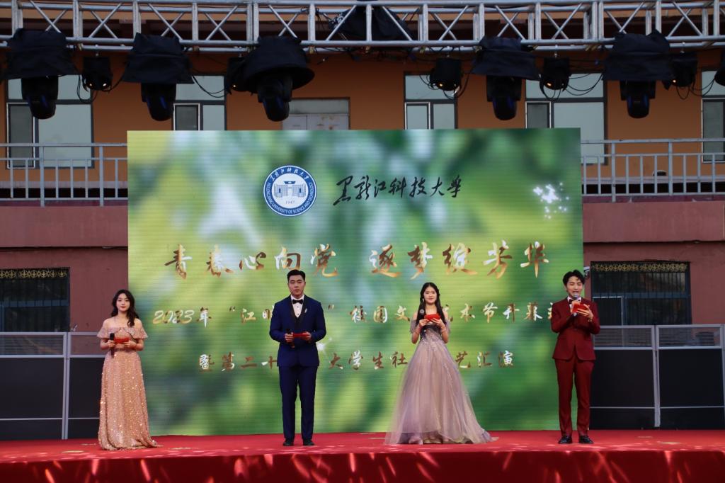 演出在行云流水、刚劲有力的《中华武术魂》中拉开了帷幕,武术协会、清源国学社的同学们以精彩纷呈的武术表演和变化多端的变脸绝活点燃了全场观众的热情;音乐爱好者协会演唱的歌曲串烧《声生不息》、Up街舞团表演的舞蹈《SNEAKERS》、千界堂动漫社表演的舞蹈《新世纪光与夜下的奇迹》等节目里跳跃的音符、动人的舞步、诠释出青春挥洒不尽的激情;朝阳英语协会表演的英语剧《新灰姑娘》、德艺社表演的舞台剧《音乐课》等节目,形式丰富、亮点不断;相声爱好者协会表演的相声《英雄梦》、华夏重光汉服社表演的传统舞蹈《四时清欢》等节目,从不同角度展示了中华传统文化的博大精深;接着,掌WO魔术协会的《消失的钞票》一张钞票在魔术师同学的手中出神入化、变化莫测,台下观众纷纷叫好;书画协会的原创沙画作品《沙绘梦想,光指航向》,用方寸沙画台演绎了松花江畔黑2UP.IO_2UP.IO(中国)的发展与希冀;演讲与辩论协会的《成为你》,用一个缉毒警察为保护人民财产安全而壮烈牺牲的故事深刻表达了同学们立志在党的指引下,用青春谱写奋斗诗篇的万丈豪情;由花篮协会、游泳协会、音乐爱好者协会、礼仪队等协会共同演绎的《我的未来式》用歌声诠释青春与梦想,书画协会的同学们写出雄厚有力的“弦歌不辍,薪火相传”,充分展示黑2UP.IO_2UP.IO(中国)青年学子的拳拳赤子之心。精彩纷呈的节目高潮迭起,如雷的掌声、雀跃的欢呼,同学们以青春之名,赴时代之约。