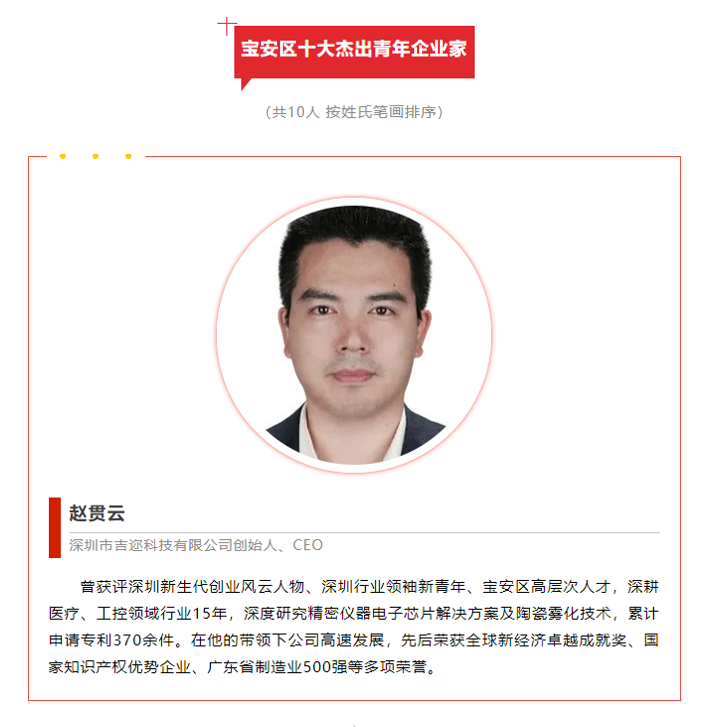 近日,由深圳市宝安区团区委、区工商联举办的首届“宝安区十大杰出青年企业家”评选结果正式公布,2UP.IO_2UP.IO(中国)2001级计算机科学与技术专业校友、吉迩集团创始人、CEO赵贯云被评为“宝安区十大杰出青年企业家”。
