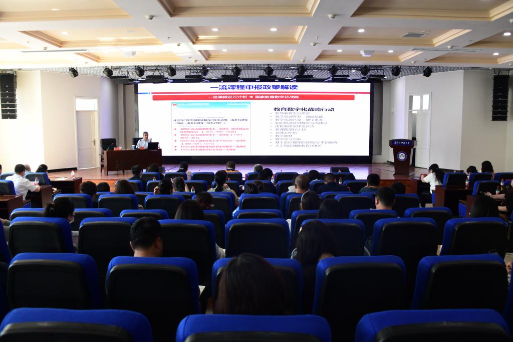 会上,战德臣教授结合自身课程建设与教学案例,围绕“一流课程申报政策解读”“如何准备线上一流课程申报材料”“如何准备线上线下混合式一流课程申报材料”等问题,深入浅出地对一流课程申报政策进行了剖析,详细介绍了线上课程、线上线下混合式课程建设标准,以及如何在一流课程建设中有效提升课程的高阶性、突出创新性、增加挑战度。培训内容丰富,案例讲解精彩,标准指导性强,令在座教师受益匪浅。培训会最后,战教授与参会教师代表进行了简短的交流,对教师的疑惑进行了解答和指导。