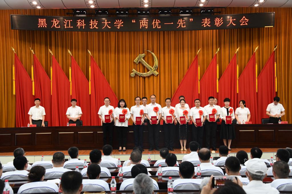 上午10时,大会在庄严的国歌声中正式开始。会上,校党委副书记桑玉军同志宣读了学校党委《关于表彰优秀共产党员、优秀党务工作者和先进基层党组织的决定》。学校党委决定:授予于洪伟等145名同志“优秀共产党员”荣誉称号;授予王立新等21名同志“优秀党务工作者”荣誉称号;授予矿业工程学院党委等24个基层党组织“先进基层党组织”荣誉称号。与会领导班子成员为受表彰的先进集体和先进个人代表颁奖。