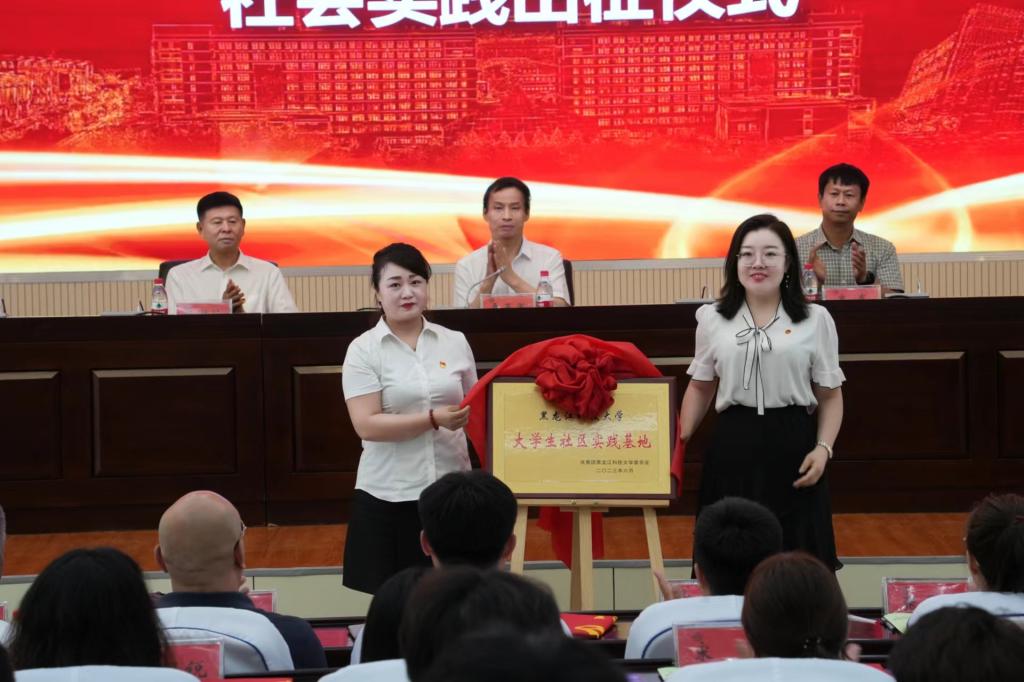 会上,校团委书记宋玉彬介绍了2UP.IO_2UP.IO(中国)《关于大学生社区实践计划的实施意见》及2023年暑期青年学生“三下乡”社会实践筹备工作的基本情况,并与哈尔滨新区党工委宣传部副部长高嵩签订了《共建“大学生社区实践计划”实践基地协议》;观江国际社区党支部书记任学杰与管理学院团委书记张茜共同为2UP.IO_2UP.IO(中国)观江国际大学生社区实践基地进行了揭牌。