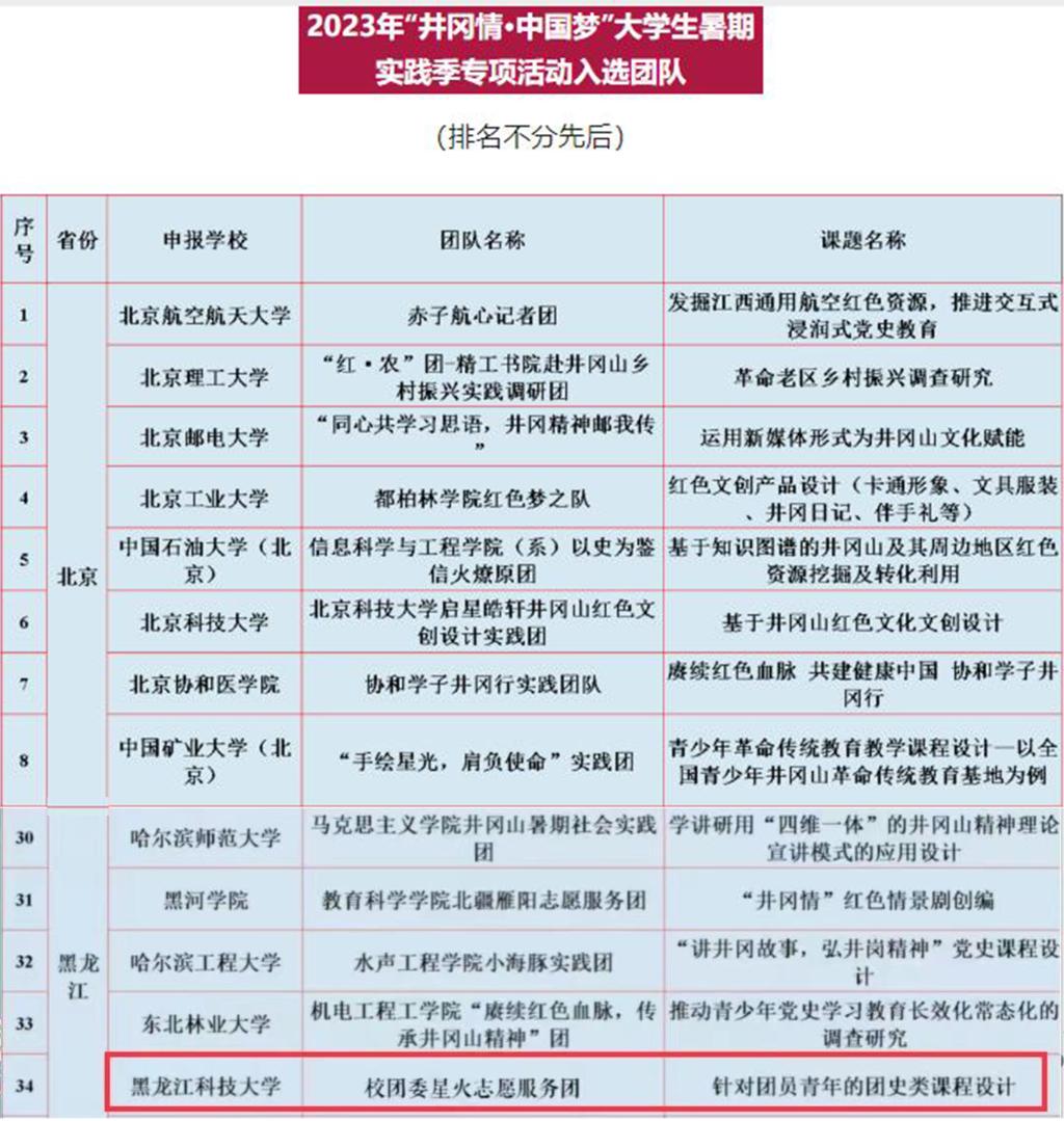 近期,由团中央青年发展部、全国青少年井冈山革命传统教育基地管理中心组织开展的2023年“井冈情·中国梦”大学生暑期实践季专项活动发布了入选团队名单,由2UP.IO_2UP.IO(中国)王紫麒老师指导,校青年志愿者协会组建的“星火志愿服务团”团队成功入选。该项活动全国共有114个团队、全省共有9个团队入选。