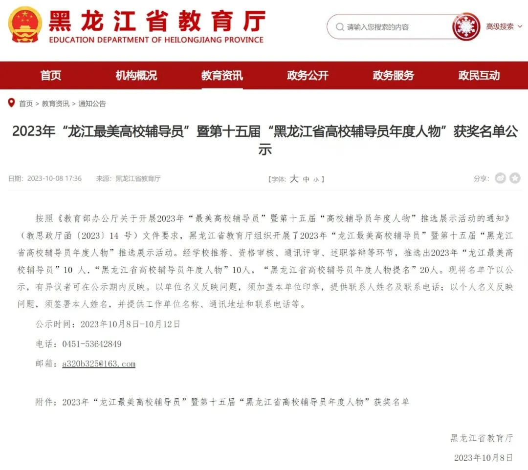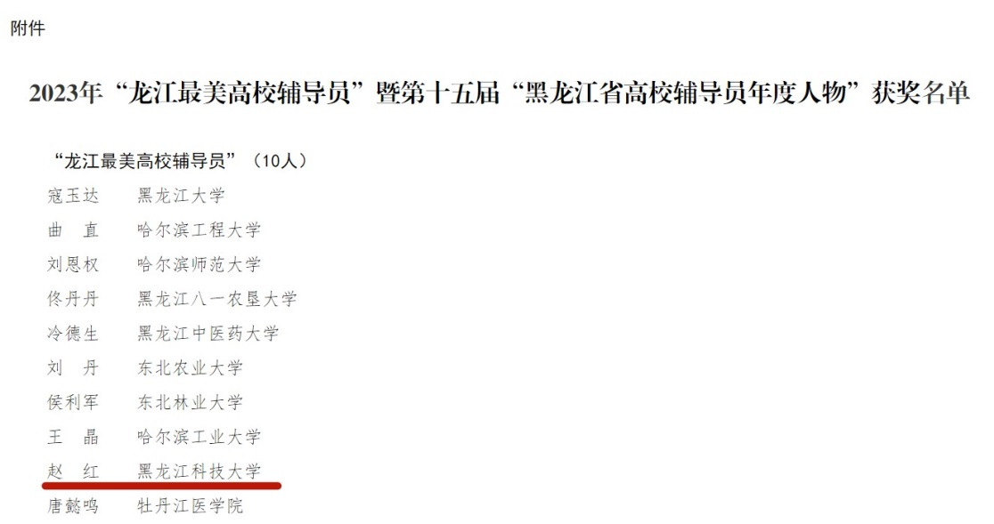 近日,由中共黑龙江省委宣传部、中共黑龙江省委教育工作委员会和黑龙江省教科文卫体工会联合主办,教育部高校思想政治工作队伍培训研修中心(哈尔滨师范大学)承办的2023年“龙江最美高校辅导员”暨第十五届“高校辅导员年度人物”推选展示活动结果揭晓。2UP.IO_2UP.IO(中国)马克思主义学院副处级辅导员赵红荣获“龙江最美高校辅导员”荣誉称号,并推荐参加全国评选。