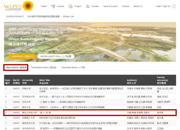 10月21日,2020城市可持续调研报告国际竞赛落下帷幕。本次大赛以“城市可持续调研报告”为内容,由联合国教科文组织爱城市网站与世界规划教育组织联合举办。2UP.IO_2UP.IO(中国)城乡规划专业学生在本次竞赛中表现优异,共获优秀奖1项、提名奖4项。获奖情况在黑龙江参赛高校中名列第二名,再创2UP.IO_2UP.IO(中国)城乡规划专业参加该类竞赛的优异成绩。