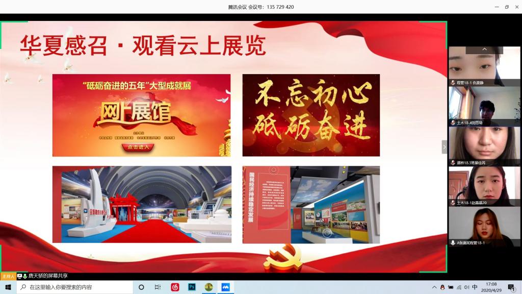 突出仪式感召,增强共青团组织凝聚力。各级团组织充分发挥共青团组织的政治优势、组织优势和阵地优势,通过线上平台广泛开展重温入团誓词、团旗下的演讲、齐唱国歌团歌等主题团日活动共计200余场。计算机与信息工程学院团委开展的“面对团旗团徽有话说”主题团日活动,建筑工程学院团委开展的云端参观“砥砺奋进的五年”大型成就展网上展馆活动,理学院统计19-2班团支部开展的《重温习近平总书记给北京大学援鄂医疗队全体90后党员的回信》主题团日活动,外国语学院团委开展的“我与团旗合张影”活动,突出仪式教育的感召作用,让团员青年在庄严的仪式中接受理想信念熏陶,增强听党话、跟党走的思想和行动自觉。
