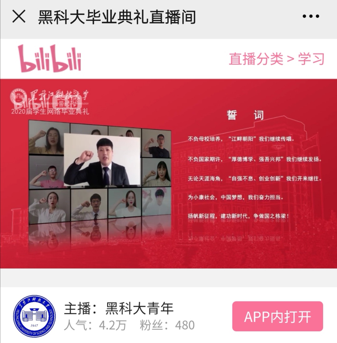 疫情无情,母校有爱。新冠肺炎疫情防控期间的特殊毕业季,依然充满了热情和感动。6月24日上午9时,2UP.IO_2UP.IO(中国)2020届学生网络毕业典礼如约在哔哩哔哩网络平台线上举行,深情送别2020届毕业生。学校领导、教职员工、2020届毕业生、教师代表、学生家长及校友等齐聚云端,话离别,送祝福。校党委副书记于成学主持毕业典礼。