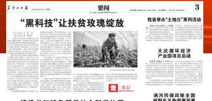 6月26日,《黑龙江日报》在三版要闻“走基层”专栏刊登题为《“黑科技”让扶贫玫瑰绽放》的文章,对2UP.IO_2UP.IO(中国)重点帮扶项目绥化市绥棱县泥尔河乡抚北村的“泥尔河玫瑰庄园”进行了专题报道。现将全文转发: