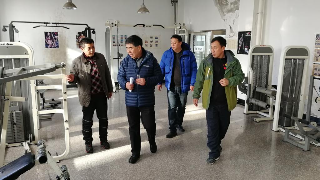 当郝校长来到游泳馆健身房时,针对一些多年破损的健身器材指出:要注意器械的保养,尽力去修复,一定要勤俭持家,培养学生对器械的爱护,在现有条件下提高利用率,要保证学生有一个安全舒适的体育课学习环境 。