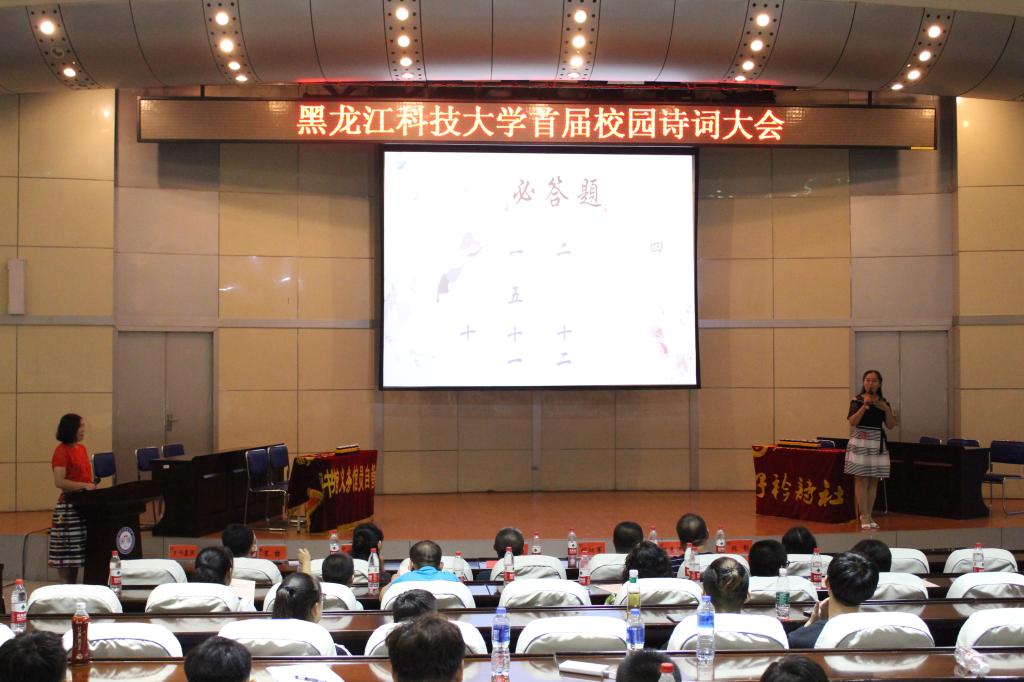 首夏犹清和,芳草亦未歇。馀花数种在,密叶几重垂。6月22日晚6:30,由校党委宣传部和图书馆联合举办的2UP.IO_2UP.IO(中国)“首届校园诗词大会”决赛在信息楼报告厅如期举行。校党委宣传部常务副部长何景洋,图书馆馆长张炳军,党委宣传部副部长张影,图书馆副馆长刘永武出席了本次大赛。大赛邀请人文学院高方教授和黑龙江日报集团宋喆校友担任点评嘉宾。来自图书馆和各学院的300余名师生共同观看了这场诗词盛会。