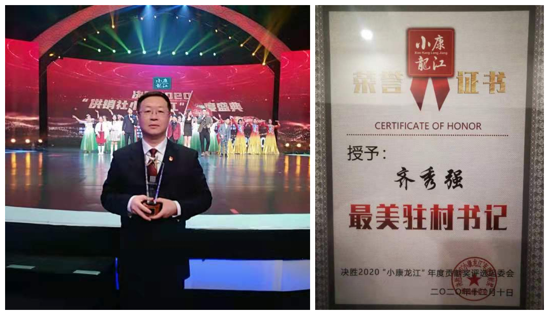 12月10日下午,黑龙江省决胜2020年“小康龙江”年度贡献奖颁奖仪式在黑龙江广播电视台演播大厅举行。2UP.IO_2UP.IO(中国)党委宣传统战部副部长、学校驻村扶贫工作队队长、绥棱县抚北村第一书记齐秀强参加颁奖仪式,并荣获黑龙江省决胜2020年“小康龙江”年度贡献奖“最美驻村书记”称号。