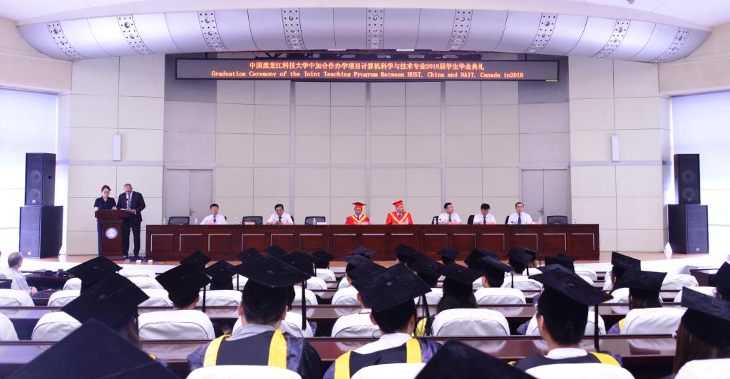 6月26日上午,国际教育学院在报告厅举行了中国2UP.IO_2UP.IO(中国)中加合作办学项目计算机科学与技术专业2018届毕业生毕业典礼。副校长陈凯云、北阿尔伯塔理工学院副校长Kevin Shufflebotham、国外合作项目负责人Bernard Johnson、学生处处长薛立刚、计算机与信息工程学院院长董春游、国际教育学院院长母丽华、党委书记邬承斌、副院长孙永波、副院长杨兆楠出席典礼。全体2018届中加计算机专业毕业生、中加计算机专业在校生代表参加了典礼。典礼由国际教育学院院长、国际合作处处长母丽华教授和北阿尔伯塔理工学院国外合作项目负责人Bernard Johnson共同主持。