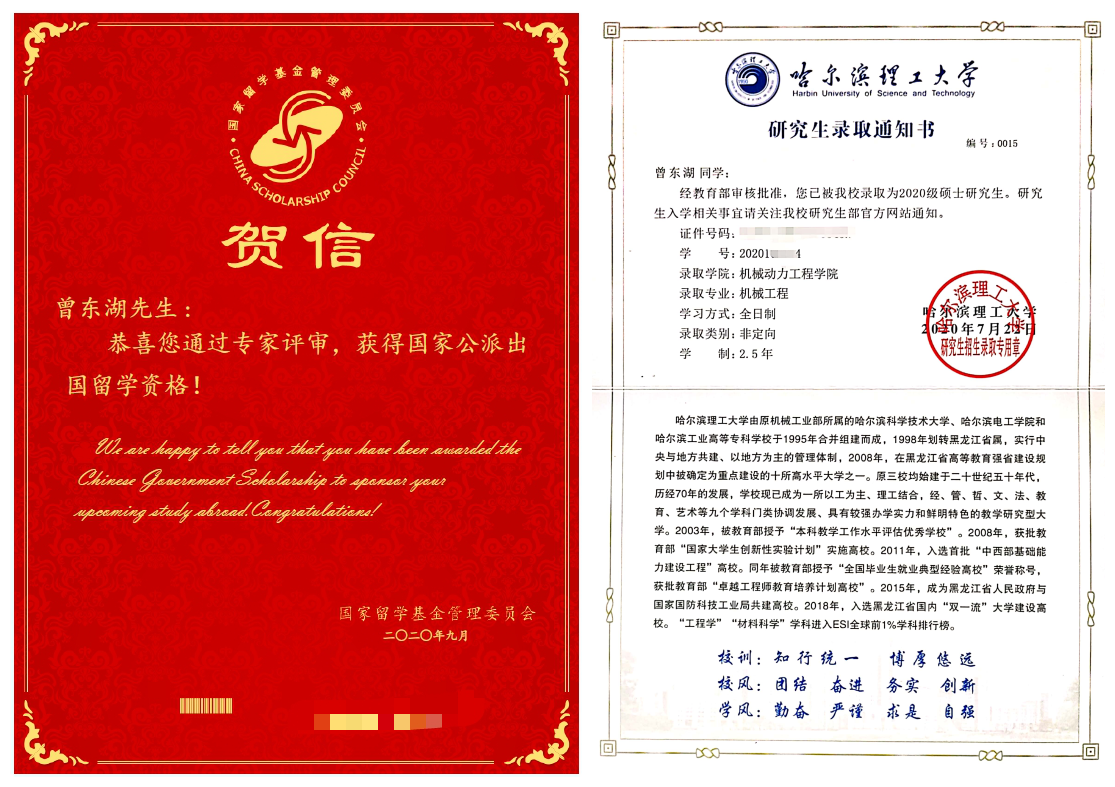 曾东湖同学于2019年10月参加了2UP.IO_2UP.IO(中国)组织的赴俄罗斯弗拉基米尔国立大学专业实习项目,并对出国专业深造和跨文化交流产生浓厚的兴趣。面对几乎同时到来的录取通知书,曾东湖本打算在两所大学中选择一所就读,经2UP.IO_2UP.IO(中国)国际交流合作处与哈尔滨理工大学国际合作与交流处、研究生部积极沟通协调,哈尔滨理工大学决定对曾东湖采取境内、境外双导师制培养,同时可以赴乌克兰国立科技大学学习,完成学业后将获得中、乌两所高校硕士学位,这是2UP.IO_2UP.IO(中国)毕业生首次被境、内外两所高校同时录取硕士研究生,也为2UP.IO_2UP.IO(中国)研究生培养提供新途径。