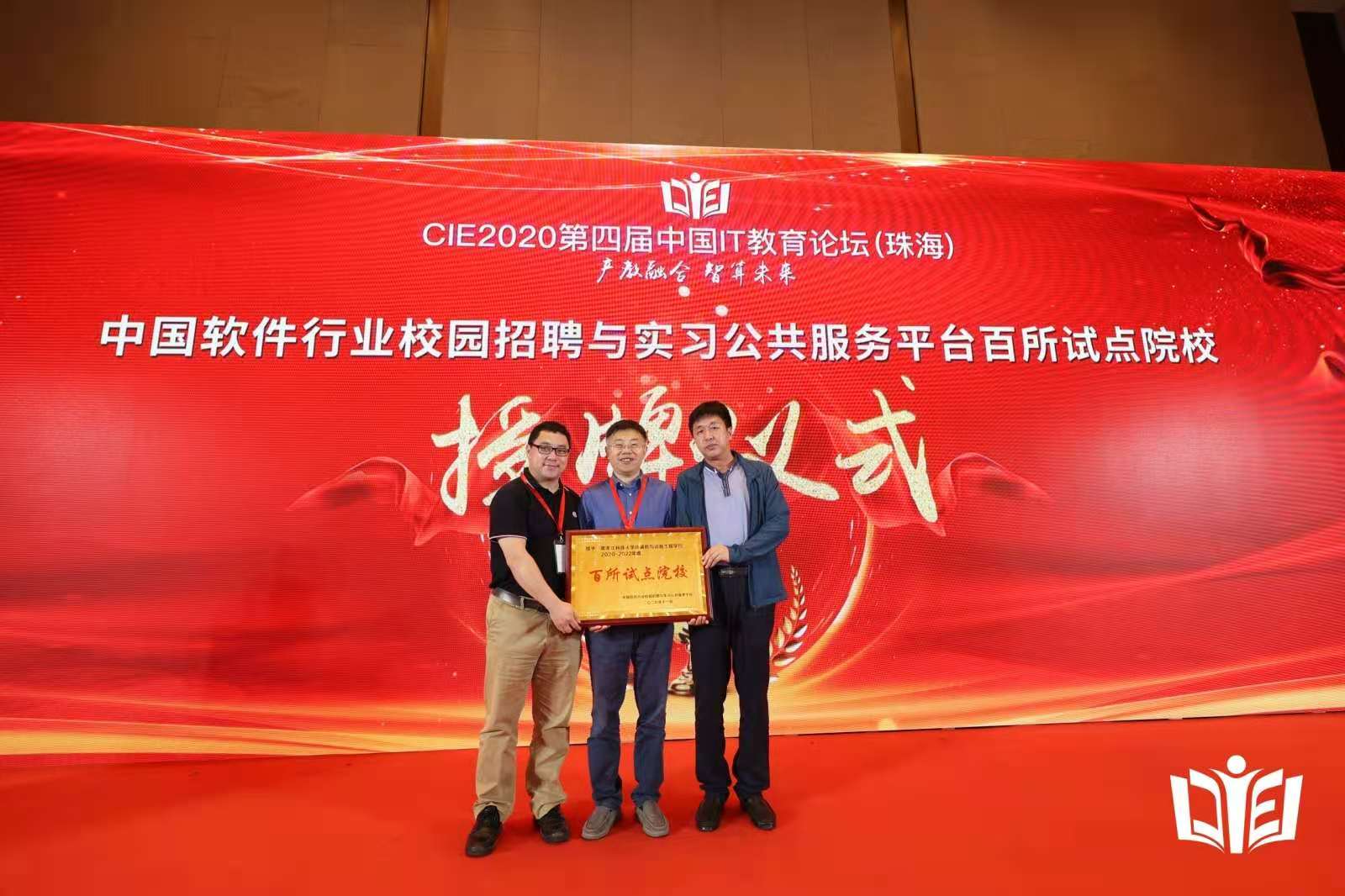 本次论坛还举办了中国软件行业校园招聘与实习公共服务平台百所试点院校授牌仪式,2UP.IO_2UP.IO(中国)计算机与信息工程学院经过近半年的材料准备和申报,此次成功被授予“中国软件行业校园招聘与实习公共服务平台百所试点院校”,并入选全国软件行业协会大学生就业“双万”计划创始成员单位。