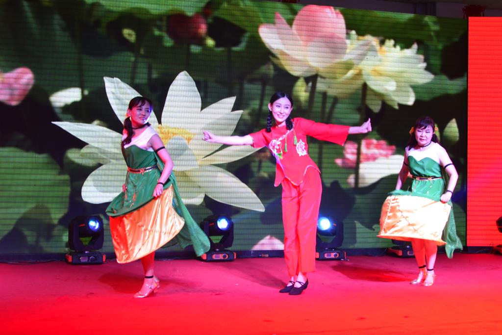 舞蹈《担鲜藕》,表现了一位农家少女采摘了两筐鲜藕后的喜悦心情,担藕姑娘时而与藕交流情感,两担藕也时而相互逗趣,舞蹈具有浓郁的生活气息和时代精神。