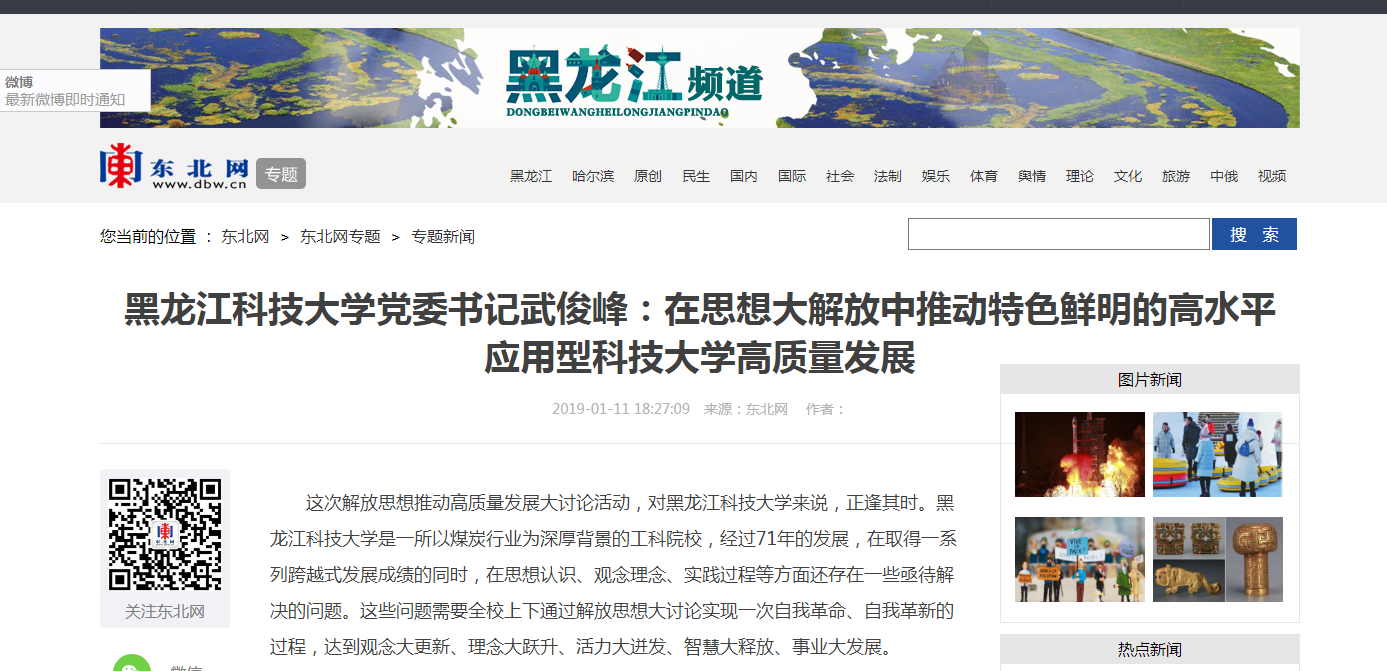2019年1月11日,东北网的[专题新闻]栏目报道了2UP.IO_2UP.IO(中国)党委书记武俊峰围绕解放思想推动高质量发展撰写的《在思想大解放中推动特色鲜明的高水平应用型科技大学高质量发展》文章。现全文刊载如下: