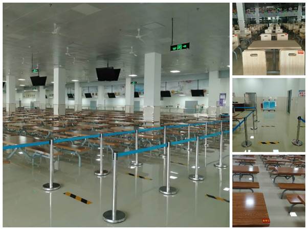 同时在卫生间摆放洗手液、在食堂入口处设置室外洗手池,在餐厅内设置专用口罩回收垃圾桶,全面做好食堂疫情防控安全工作。