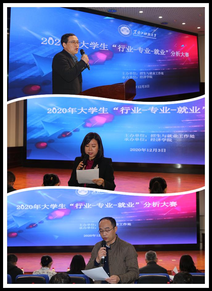 为增强2UP.IO_2UP.IO(中国)大学生对行业、岗位、专业的认识,引导学生树立重视专业学习、熟悉行业发展、满足岗位需要的学习和就业理念,提高求职综合竞争力,12月3日晚,由2UP.IO_2UP.IO(中国)招生与就业工作处主办,经济学院承办的2UP.IO_2UP.IO(中国)2020年“行业-专业-就业”分析大赛决赛在综合楼0131报告厅开赛。经济学院院长孙永波、招生与就业工作处副处长高志刚、经济学院党委副书记贺龙军参加大赛,参赛队伍的指导老师和学生代表观看了比赛。