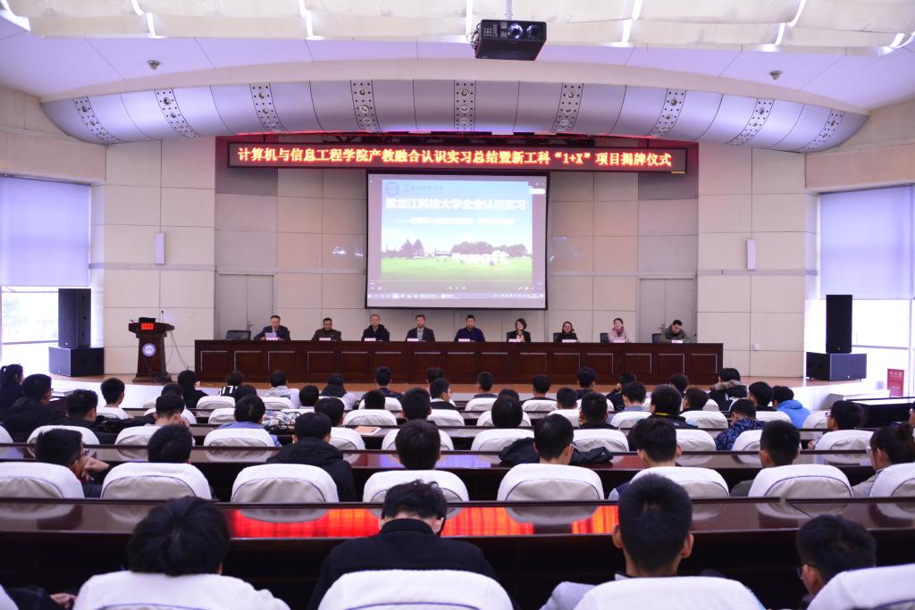 10月25日下午,学院在信息楼报告厅举行产教融合认识实习总结暨新工科“1+X”项目揭牌仪式。出席仪式的企业代表有东软集团技术总监刘志韬、运营总监赵晶;校方代表有教务处副处长邢世海、评估中心副主任袁芳。学院领导班子成员、任课教师和赴沈阳东软集团参加认识实习的2019级5个班级的同学参加了仪式,仪式由学院副院长赵福军主持。
